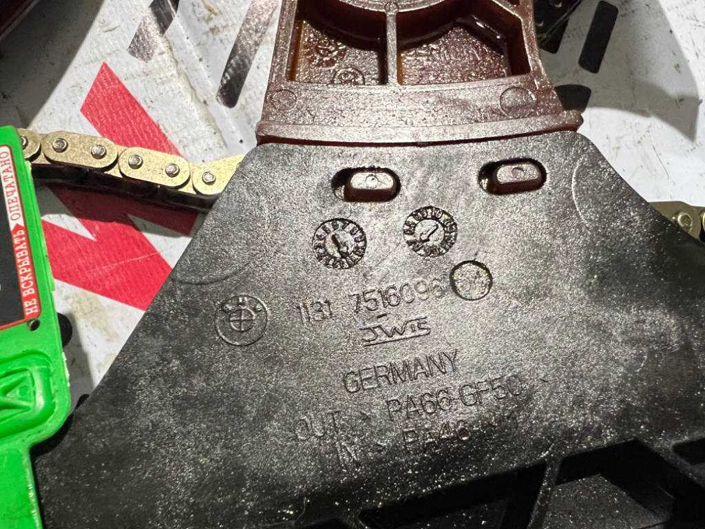 Описание: Планка натяжителя и направляющая цепи Комплект ГРМ N54 оригинальный номер 11317542837 запчасть б\у в хорошем состоянии бирка 0200727